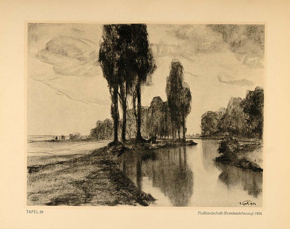 "Flusslandschaft (Kreidezeichnung), 1924."