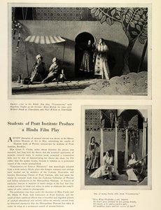 This is an original 1924 halftone print of a Hindu film play put on by the Pratt Institute. The caption begins, "A Hindu photoplay of unusual interest was shown at the Metropolitan Museum of Art in May, embodying the results of Museum study of Persian manuscripts by students of Pratt Institute, Brooklyn. Miss Grace O. Clarke, under whose direction the picture was executed, had long held the theory that the practical application of museum research study, to student work, presented a tremendous field, and by way of demonstrating her theory she chose the film rather than the spoken drama, because it remains as a permanent record of the results accomplished."