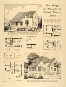 This is an original 1924 halftone print for house designs from the Architects' Small House Service Bureau of the United States. The print features a blueprint of a two story home.