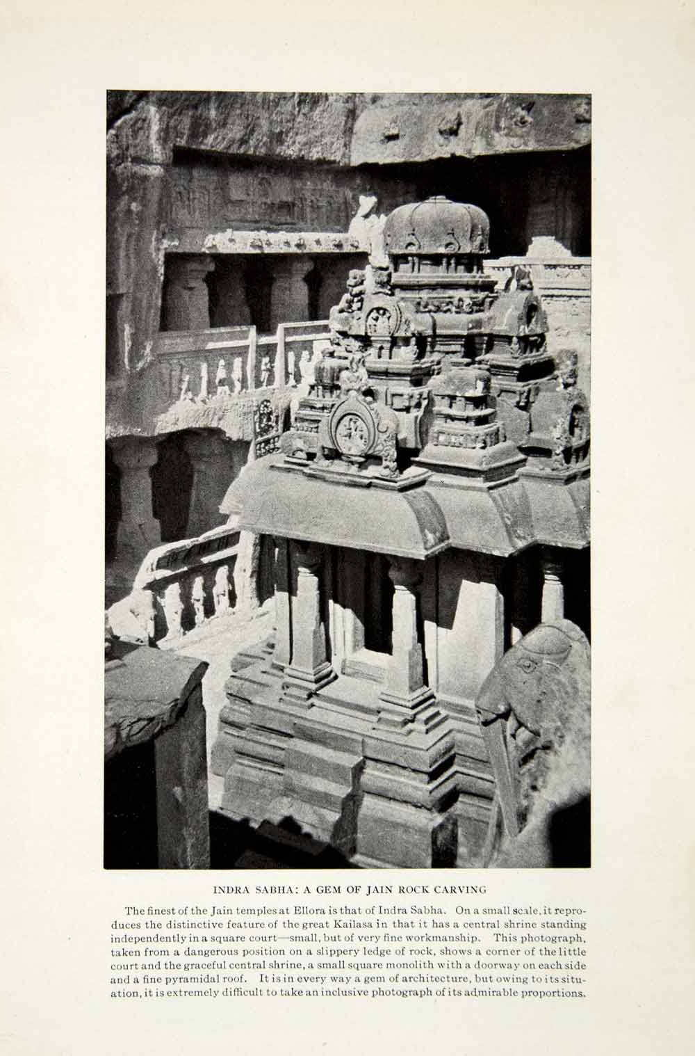 This is an original 1924 black and white halftone print of the shrine at the temple of "Indra at Sabha," in India.