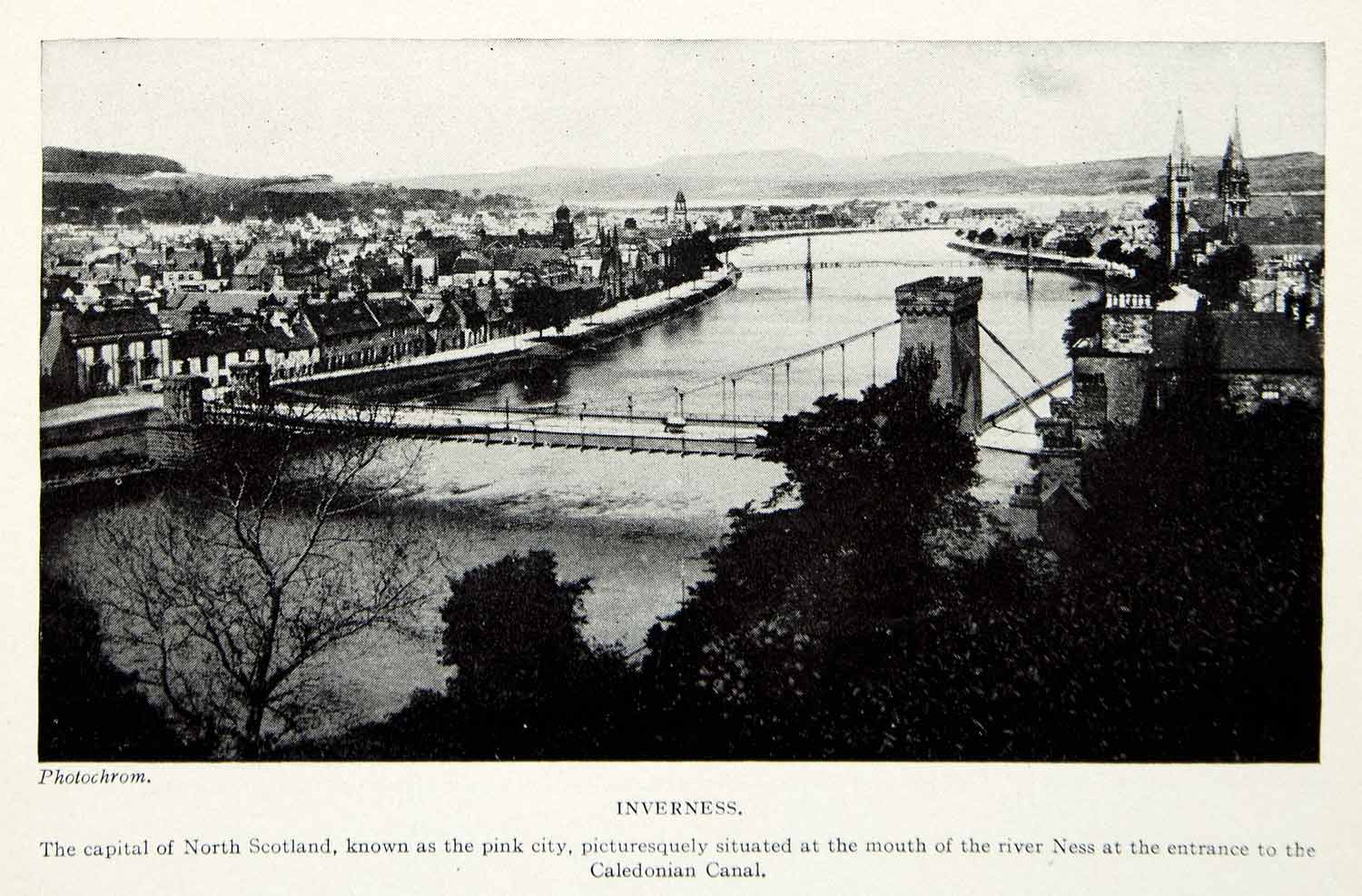 Keywords specific to this image: Scottish, United Kingdom, Urban, Metropolis, Cosmopolitan, Infrastructure, Buildings, Skyline, Highlands, Road, Rooftops, Church, Tower, Spire, Horizon, Scenic, Caledonian Canal, Waterway