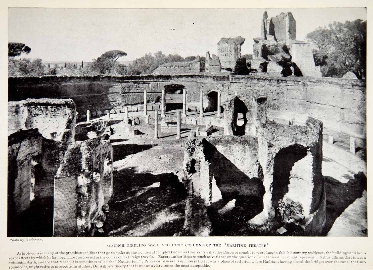 This is an original 1924 black and white halftone print of the "Staunch Girdling Wall and Ionic Columns of the 'Maritime Theatre'."