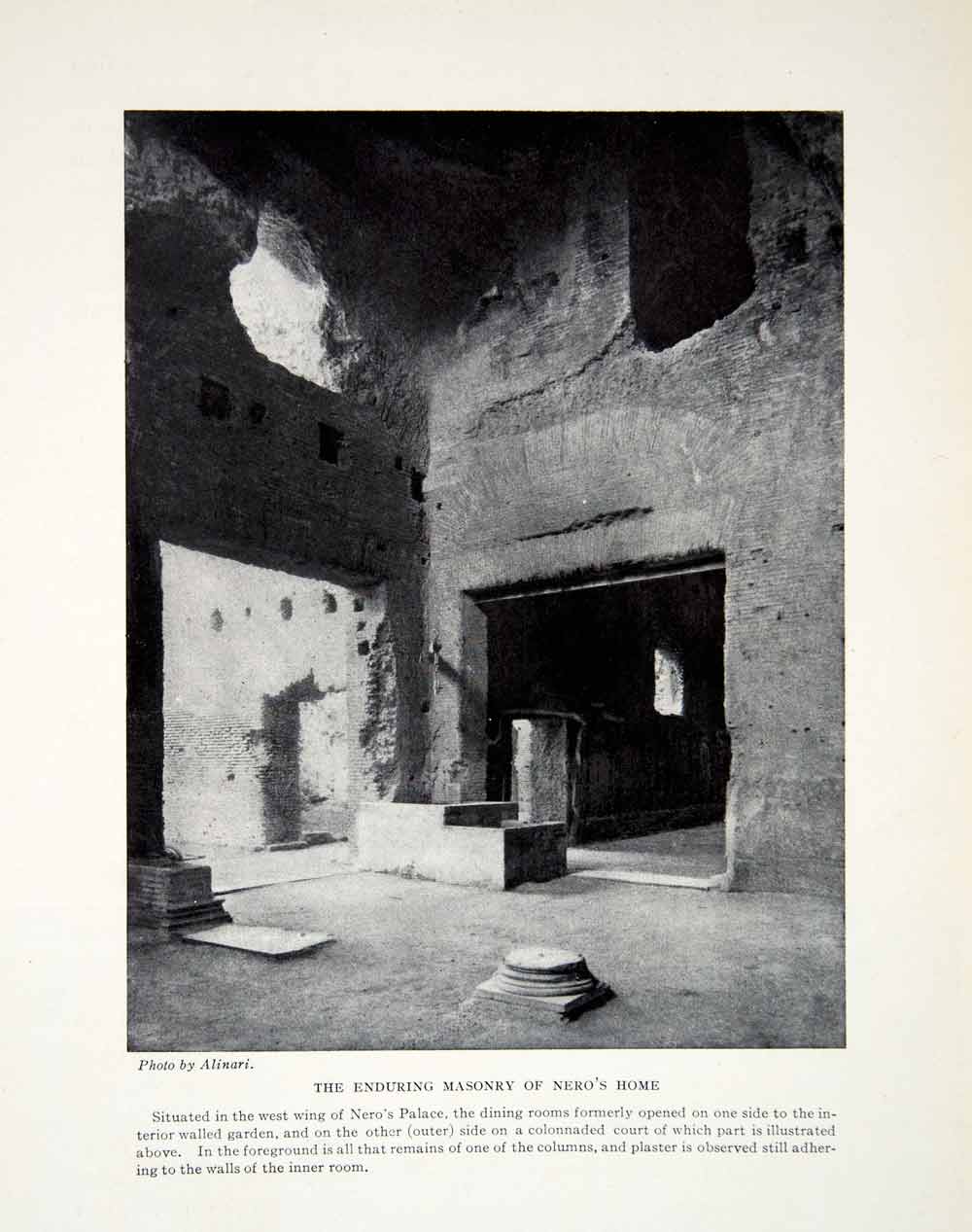 This is an original 1924 black and white halftone print of "The Enduring Masonry of Nero's Home," in Rome, Itlay.