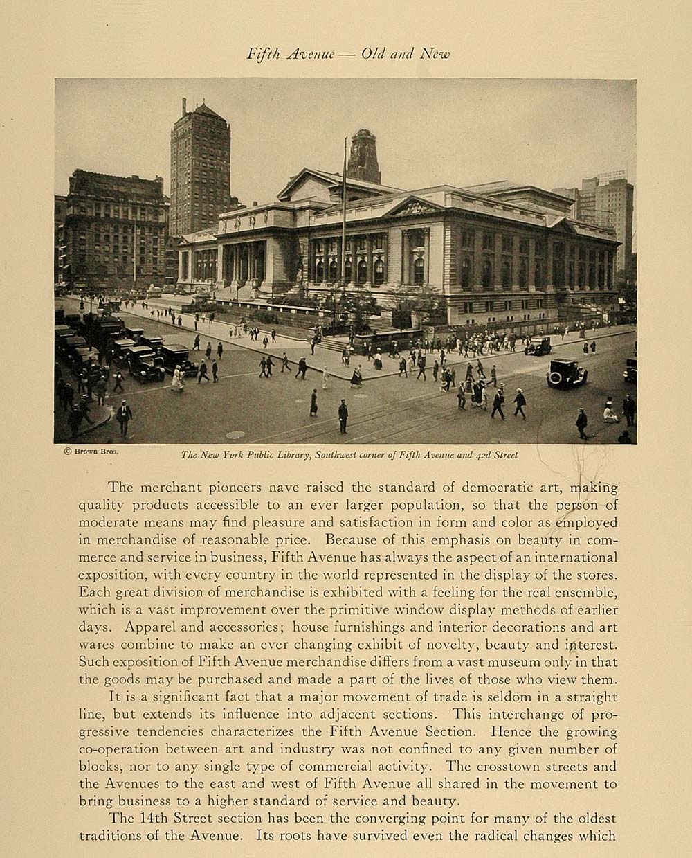 This is an original 1924 halftone print of the New York Public Library on the southwest corner of Fifth Avenue and 42nd Street in New York City.