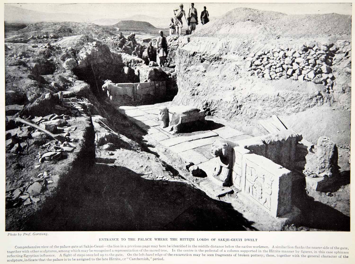 This is an original 1924 black and white halftone print of the "Entrance to the Palace Where the Hittite Lords of Sakje-Geuzi Dwelt."