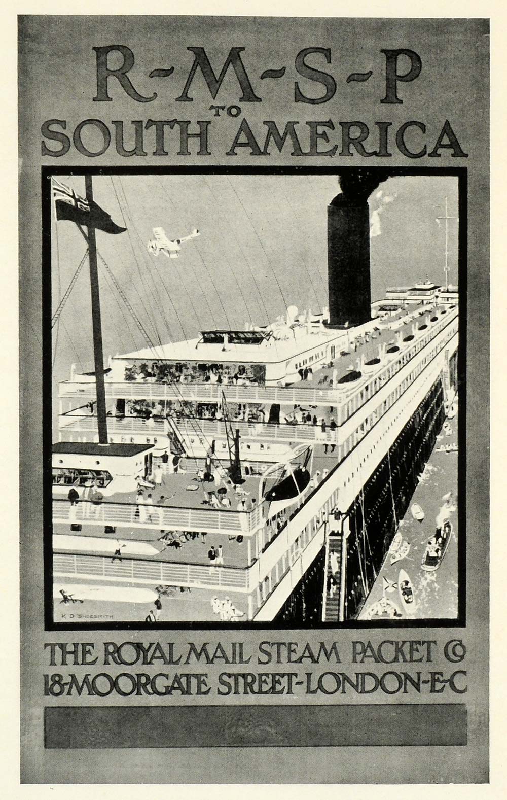1924 Print Poster K. D. Shoesmith Royal Mail Ship Cruise Travel Deck London ABA