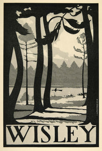 1924 Print Robert Gibbings Mini Poster Art Wisley England Travel Landscape Trees