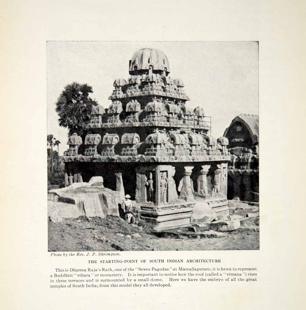 This is an original 1924 black and white halftone print of "The Starting Point of South Indian Architecture," Dharma Raja's Rath.
