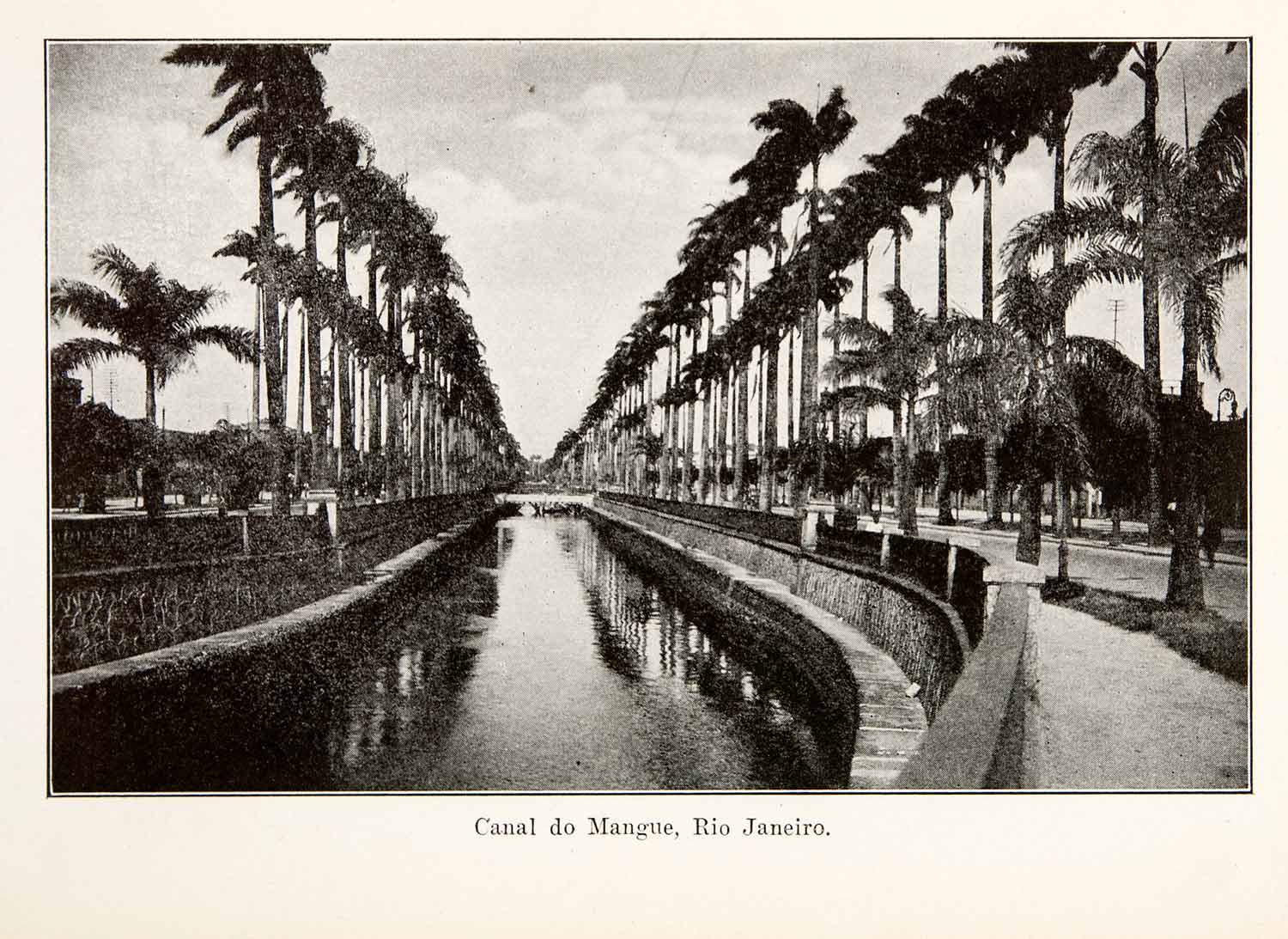 This is an original 1924 black and white halftone print of Canal do Mangue in Rio de Janeiro, Brazil. This canal system flows straight through the Central Zone of the city.
