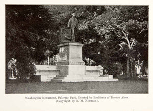 This is an original 1924 black and white halftone print of Palermo Park in Buenos Aires, with it's monument to George Washington. Officially called Parque Tres de Febrero, this park is 62 acres and resides in the neighborhood of Palermo.