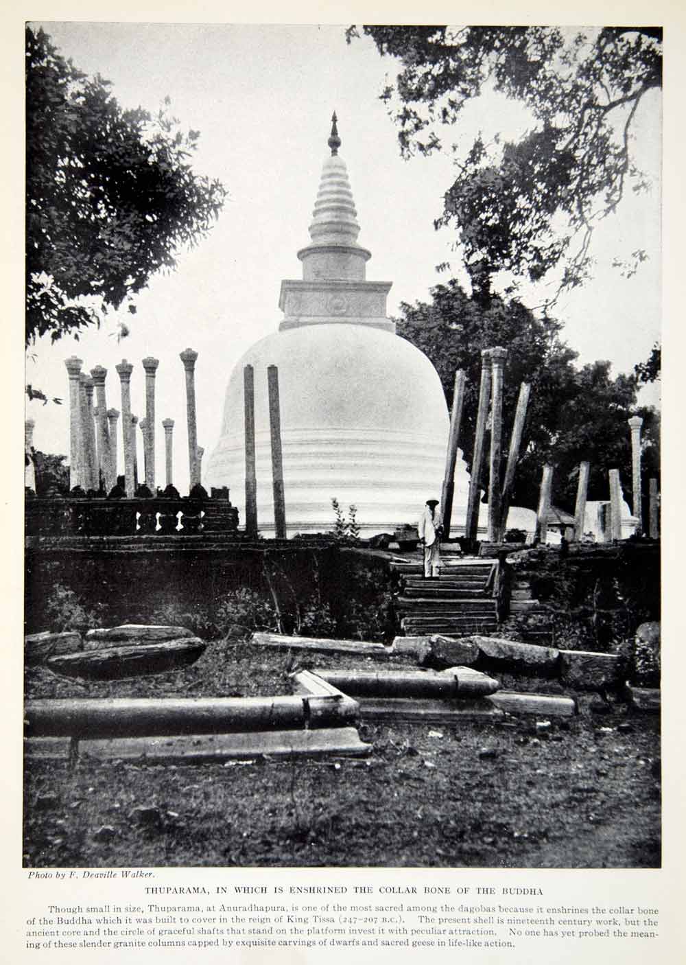 This is an original 1924 black and white halftone print of "Thuparama, In Which is Enshrined the Collar Bone of the Buddha."