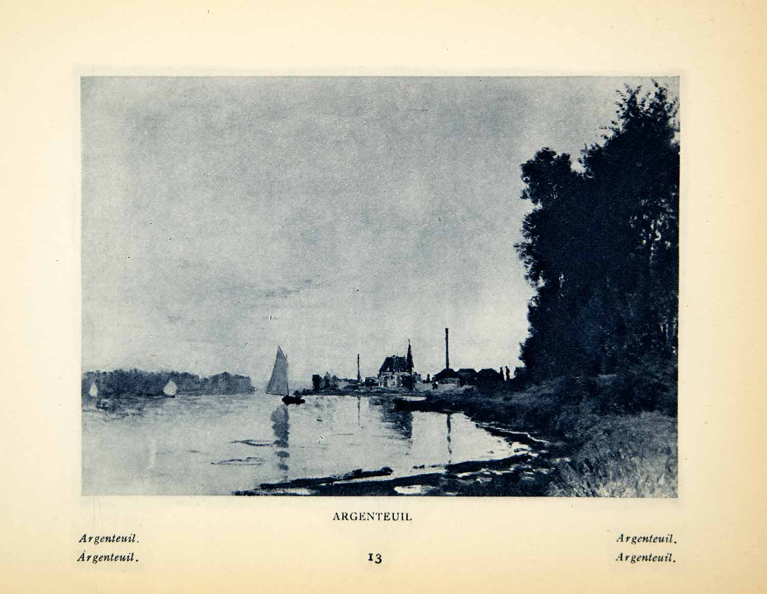 1924 Rotogravure Argenteuil Paris France Landscape Shore River Boat Claude XAX9