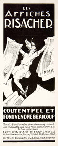 This is an original 1925 black and white print ad for Les Affiches Risacher, a French advertising agency that specialized in poster art.