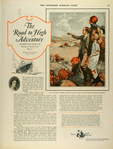 This is an original 1925 color print ad for the laundry industry by The American Laundry Machinery Company of Cincinnati, Ohio. This ad features a story by Frances Parkinson Keyes called "The Road to High Adventure."
