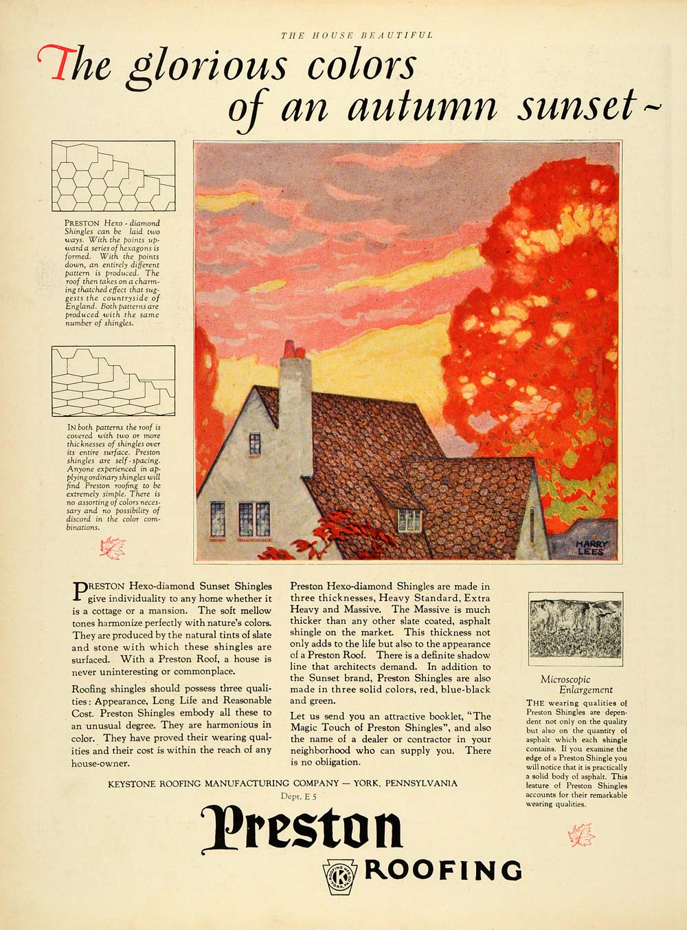 This is an original 1925 color print ad for the Preston Roofing from Keystone Roofing Manufacturing Company located in York, Pennsylvania.