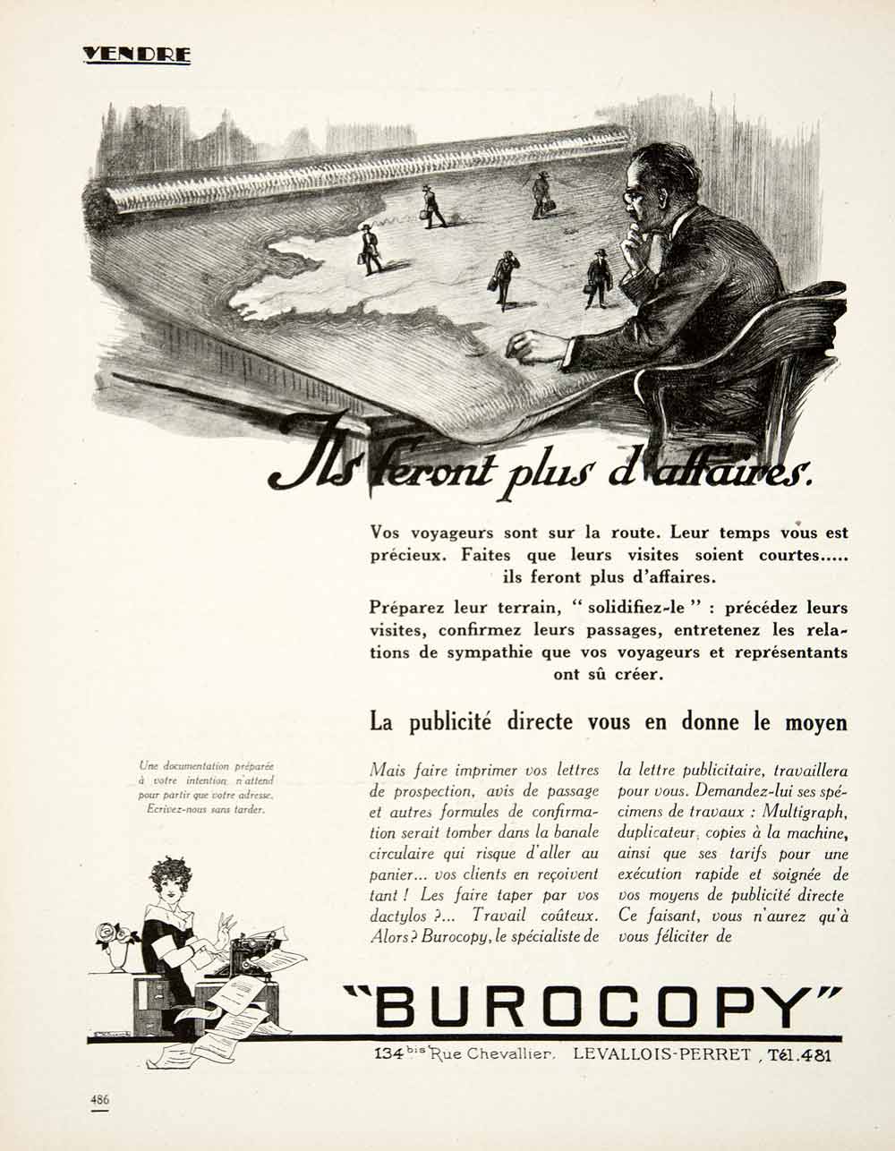 This is an original 1925 black and white print ad for the publicity campaign specialists at Burocopy, located at 134 Rue Chevallier, Levallois-Perret.