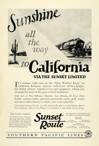 This is an original 1925 black and white print ad for the Sunset Limited from Southern Pacific Lines.