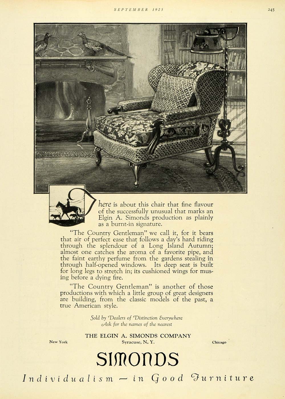 This is an original 1925 black and white print ad for the Simonds Furniture from Elgin A. Simonds Company located in Syracuse, New York.