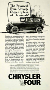 This is an original 1925 black and white print ad for the 1925 Chrysler Four touring cars that were made and sold by the Chrysler Sales Corporation of Detroit, Michigan (MI) during the Roaring Twenties era.