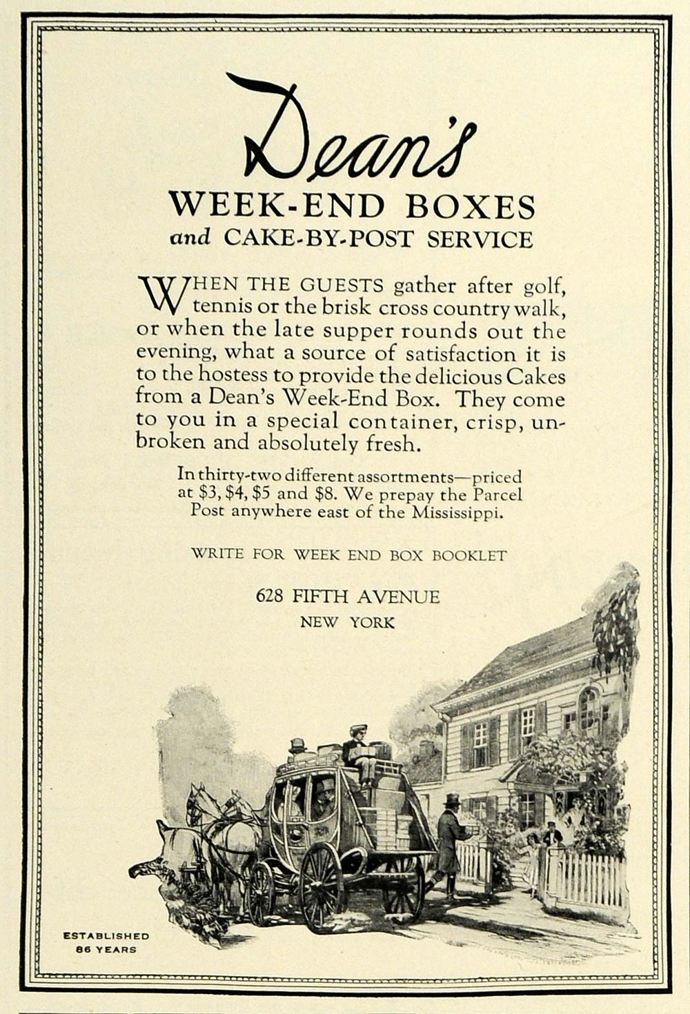This is an original 1925 black and white print ad for the Dean's Week-End Boxes and Cake-by-post Service from Dean's, 628 Fifth Avenue, New York City.