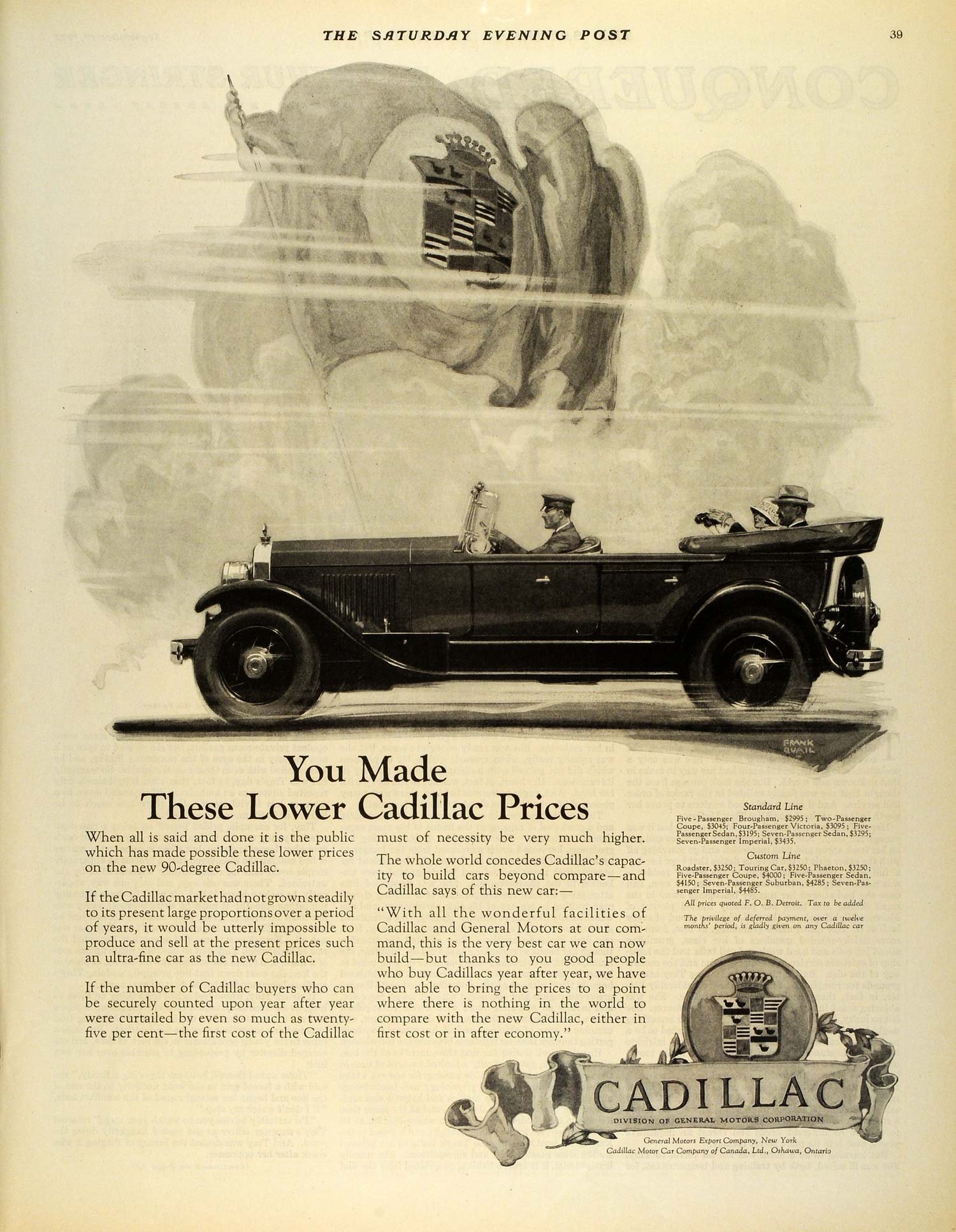 This is an original 1925 black and white print ad for the 90 Degree style Cadillac automobile by General Motors.