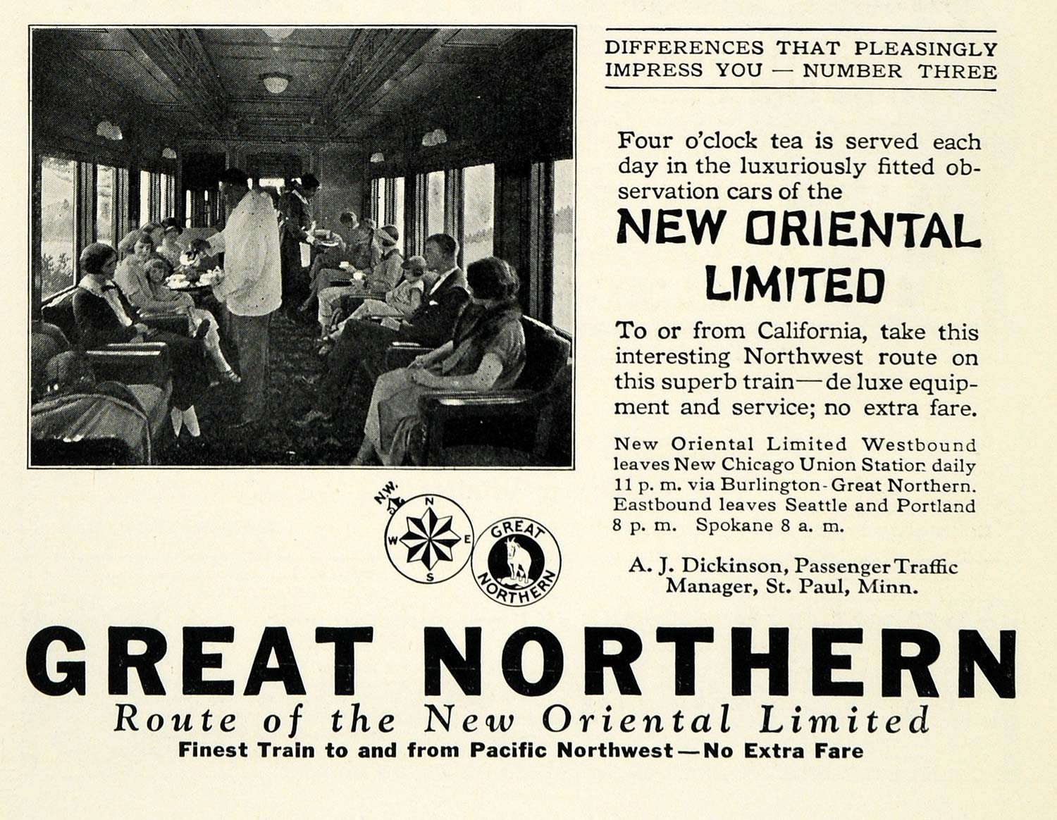 This is an original 1925 black and white print ad for The Great Northern Railroad.