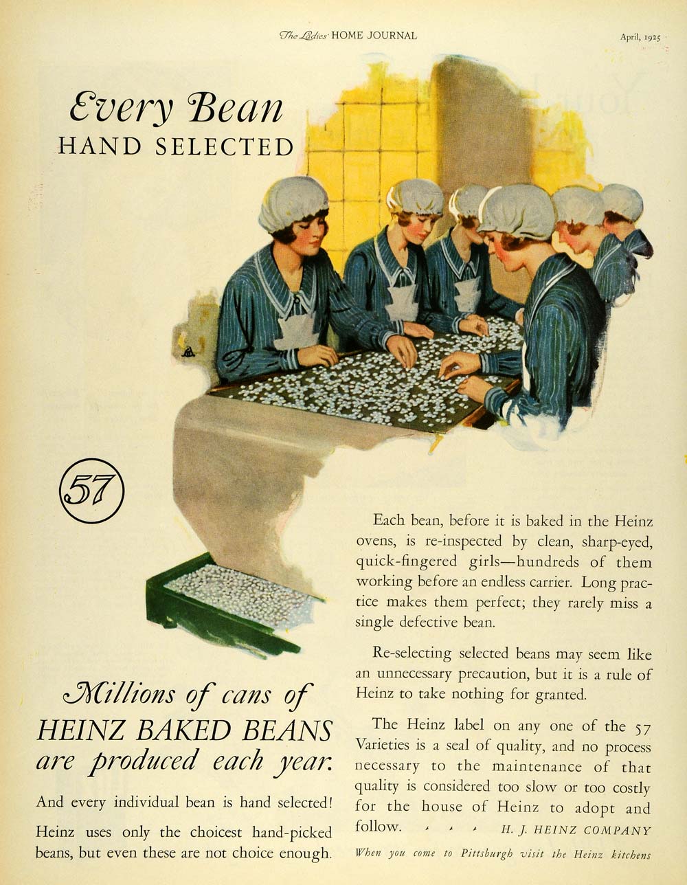 This is an original 1925 color print ad for Heinz Baked Beans by H. J. Heinz Company.