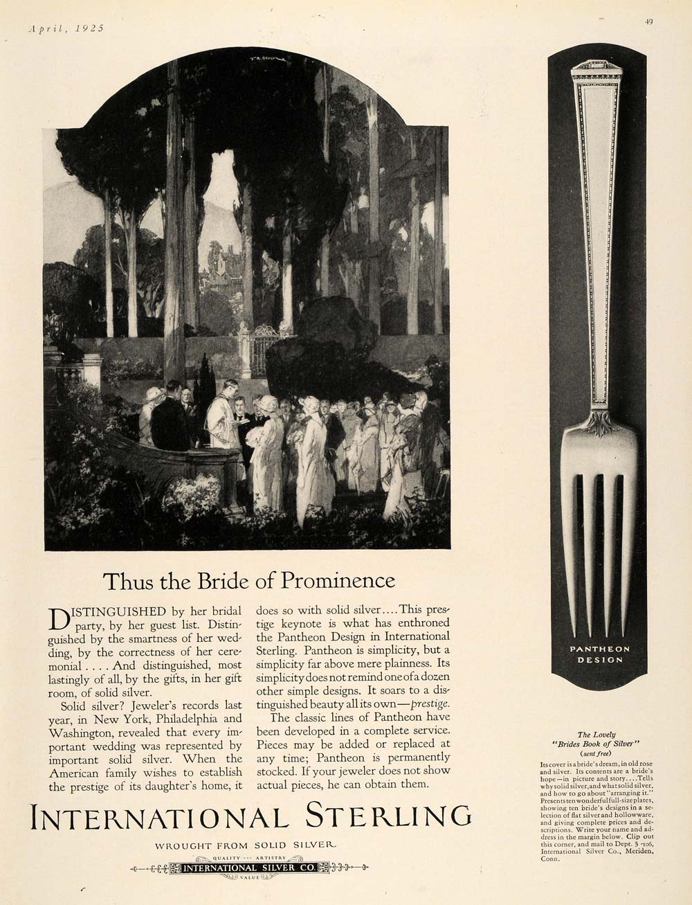 Keywords specific to this image: Vintage Advertising, gift, wedding, bride, present, fork, Pantheon, design, utensil, silverware, bridal