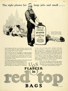 This is an original 1925 black and white print ad for the UGS Plaster in Red Top Bags from United States Gypsum Company located at 209 West Monroe Street, Chicago, Illinois.