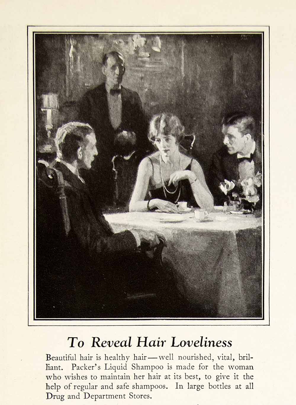 This is an original 1925 black and white print ad for Packer's Liquid Shampoo.