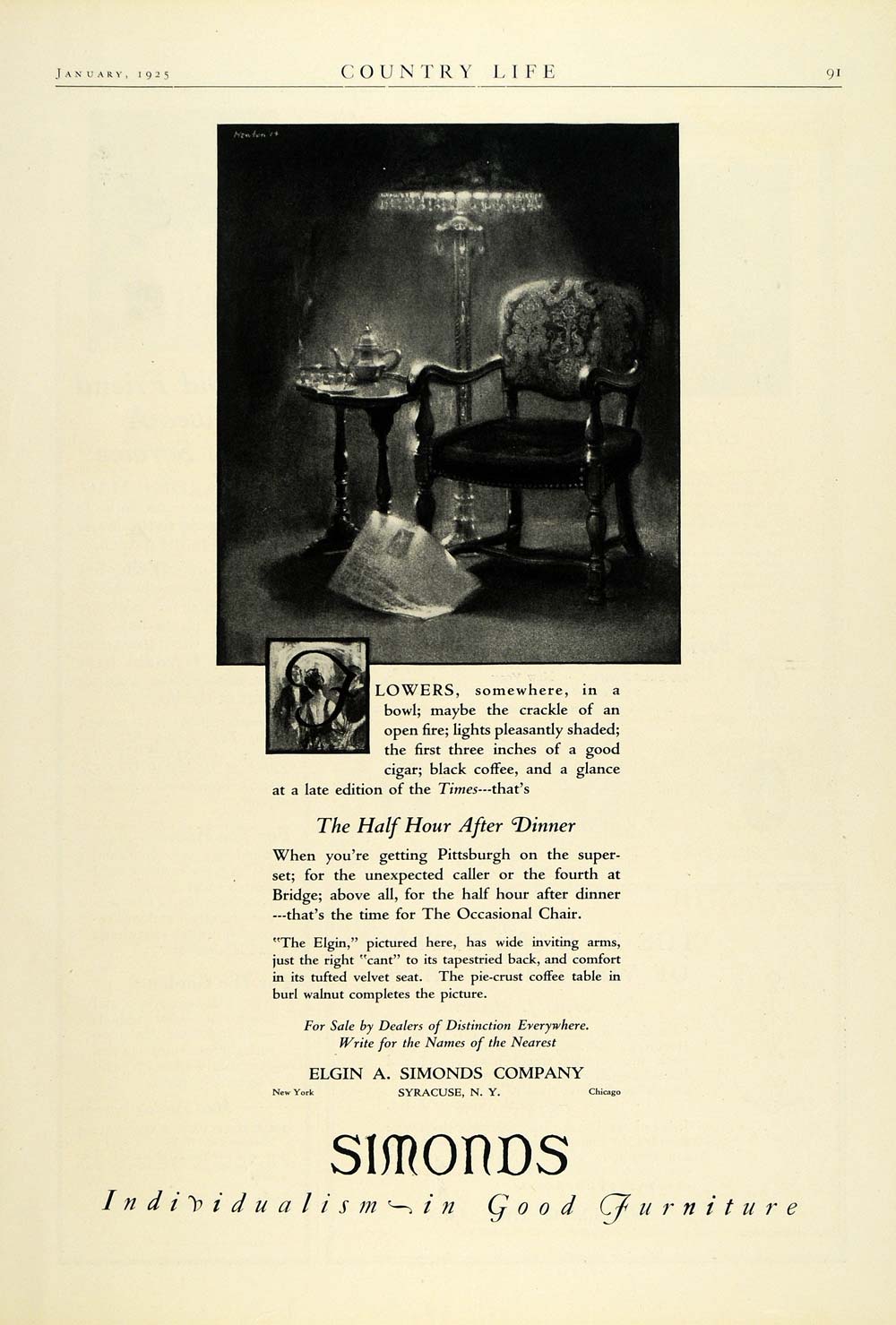 This is an original 1925 black and white print ad for the Simonds Furniture from Elgin A. Simonds Company located in Syracuse, New York.