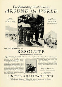 This is an original 1925 black and white print ad for the United American Lines located at 35-39 Broadway, New York City.