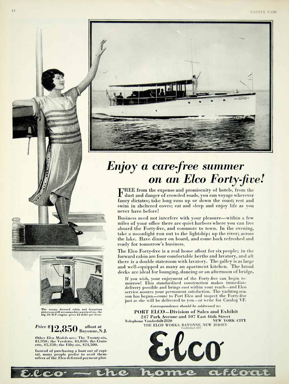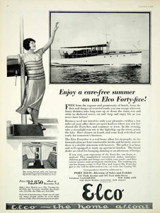 This is an original 1925 black and white print ad for the Elco Forty-Five Yacht ($12,850) from The Elco Works, Bayonne, New Jersey.