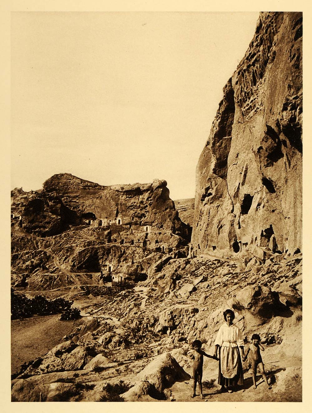 1925 Cave Dwellings Houses Almeria Spain Woman Children - ORIGINAL SP3
