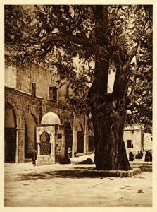 1925 Jerusalem Old City Temple Mount Fountain Tree - ORIGINAL PHOTOGRAVURE PS5