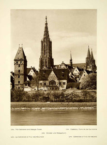 This is an original 1925 sepia photogravure of the Cathedral and Metzger Tower in Germany.
