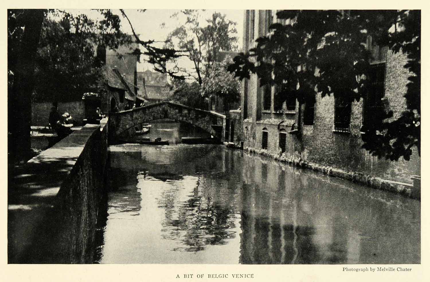 This is an original 1925 halftone print of a view of the Belgic Venice. Bruges is known as the Venice of the North due to its number of canals.