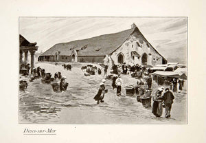 1925 Print Dives-sur-Mer Normandy France Cityscape Market Bazaar McManus XGKB6