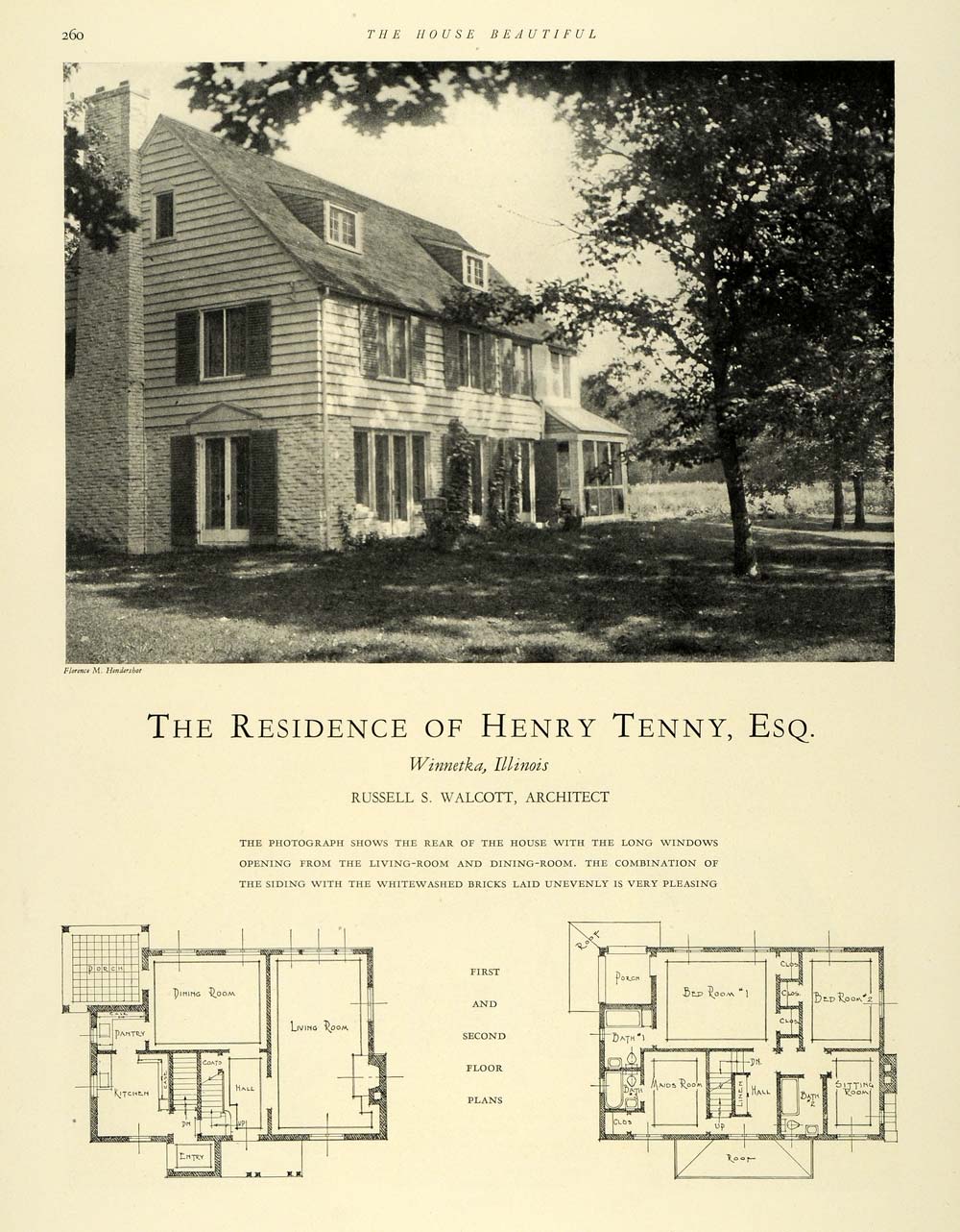 This is an original 1925 halftone print of the home of Henry Tenny in Winnetka, Illinois, featuring architecture by Russell S. Walcott.