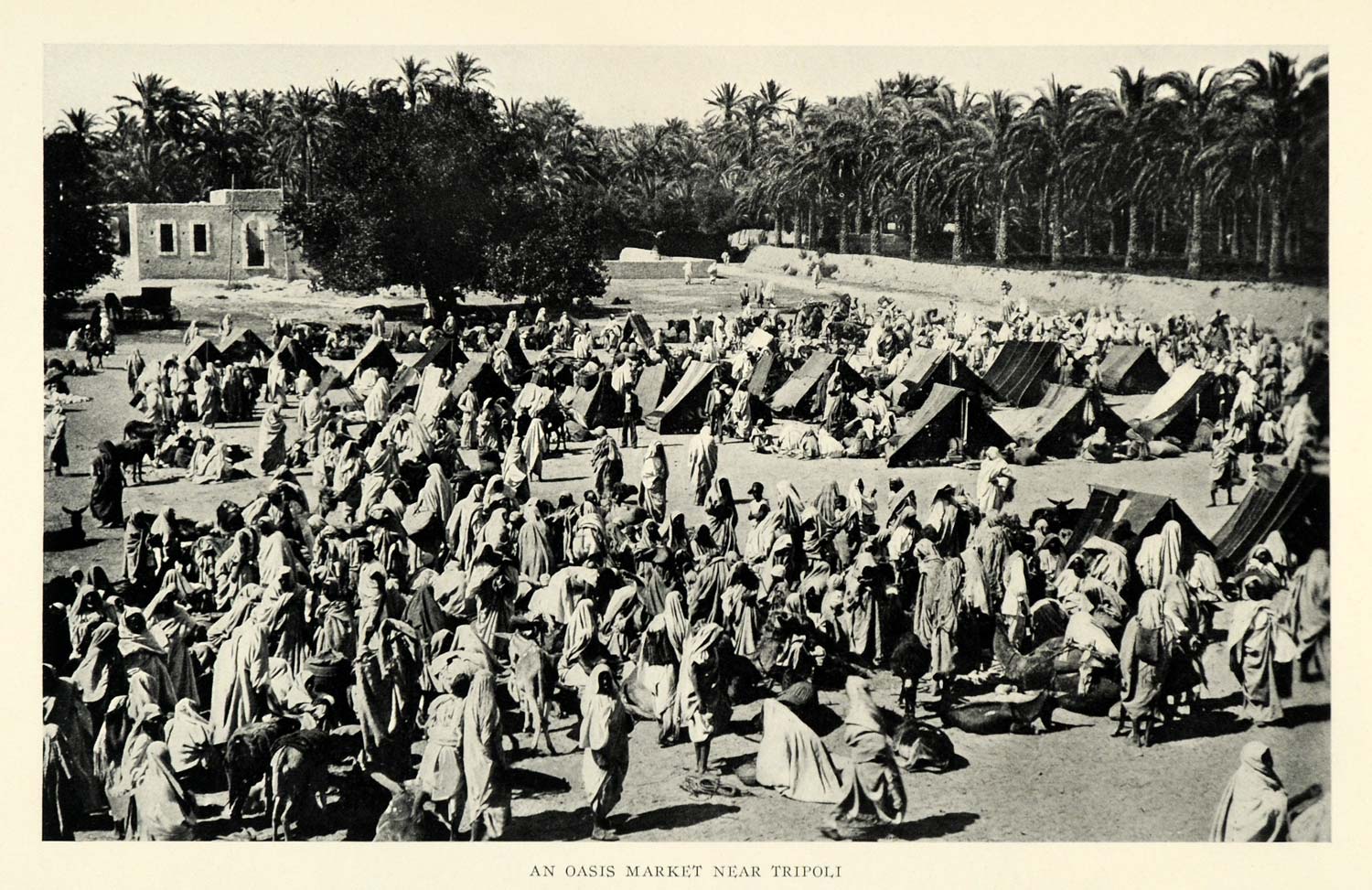 This is an original 1925 halftone print of a marketplace in Tripoli, Libya.
