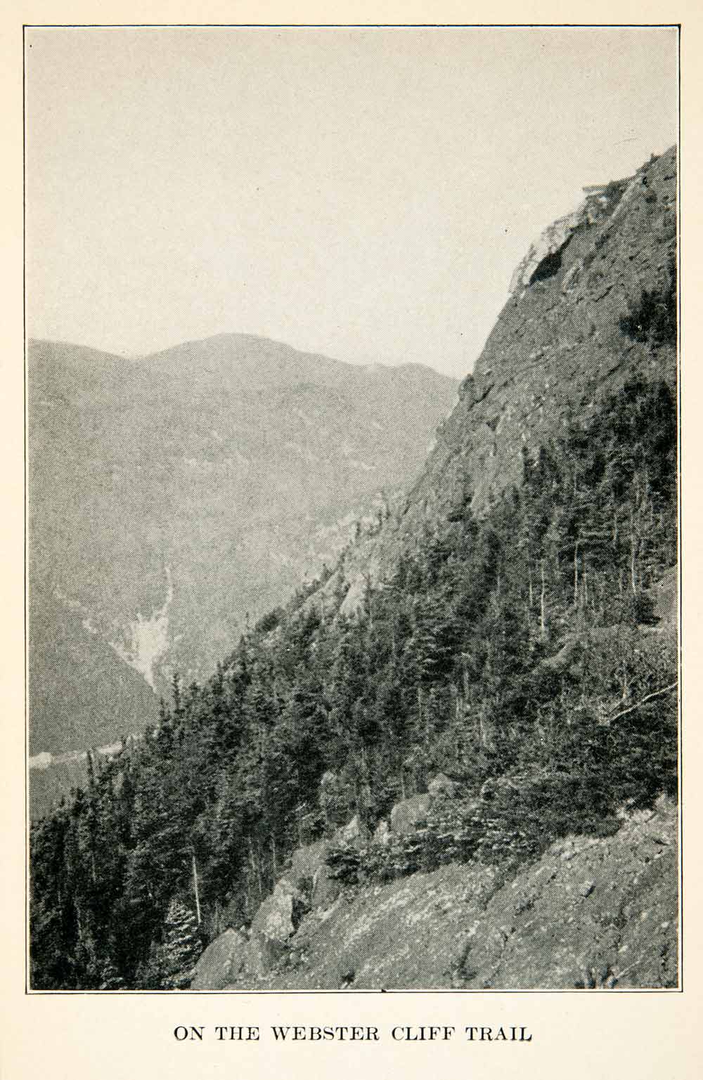 This is an original 1925 black and white halftone print of the Mount Webster Cliff Trail in the White Mountains in New Hampshire.
