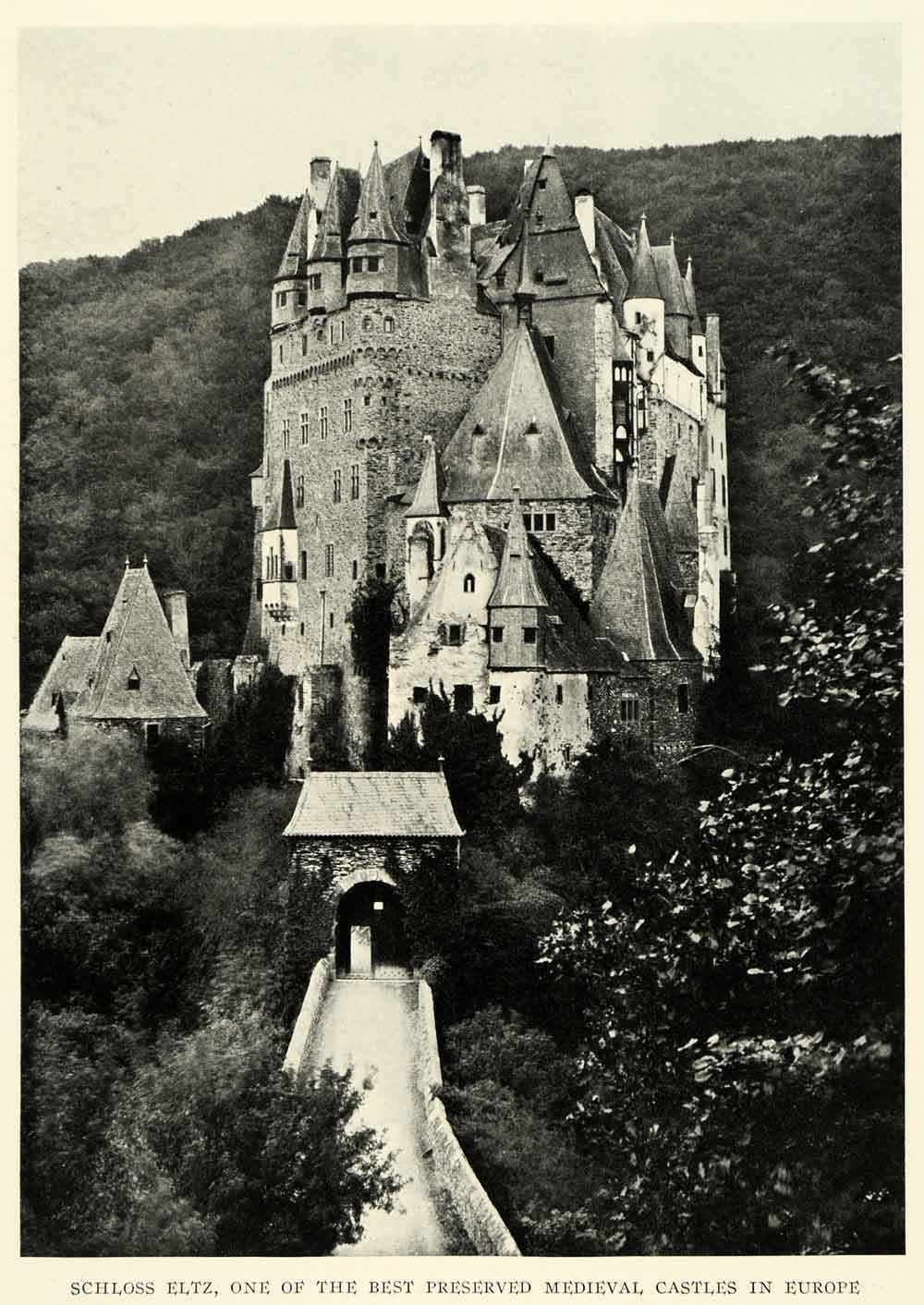 This is an original 1925 halftone print of Schloss Eltz, which is one of the best preserved Medieval castles in Europe. This castle has never seen destruction or restoration.