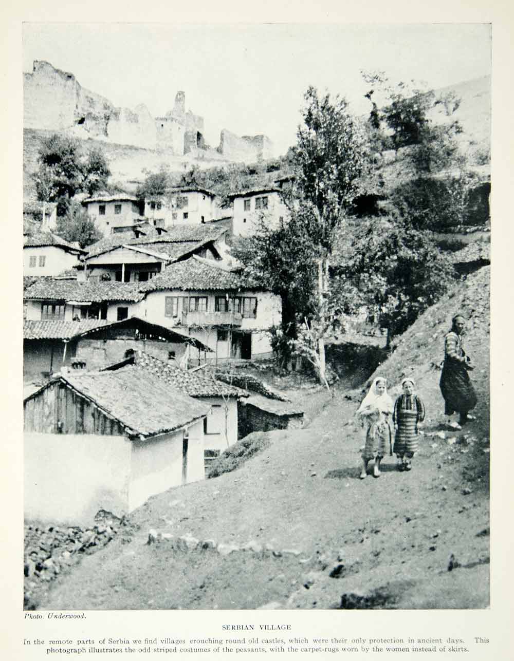 This is an original 1925 black and white halftone print of a rural village in Serbia, Europe.