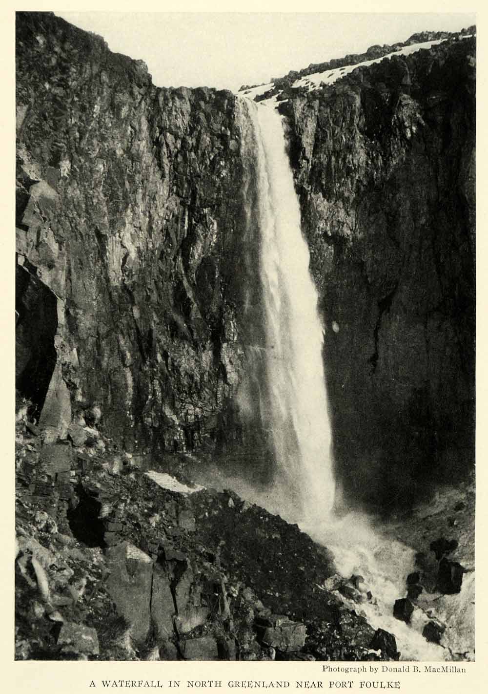 This is an original 1925 halftone print of a waterfall in North Greenland near Port Foulke.