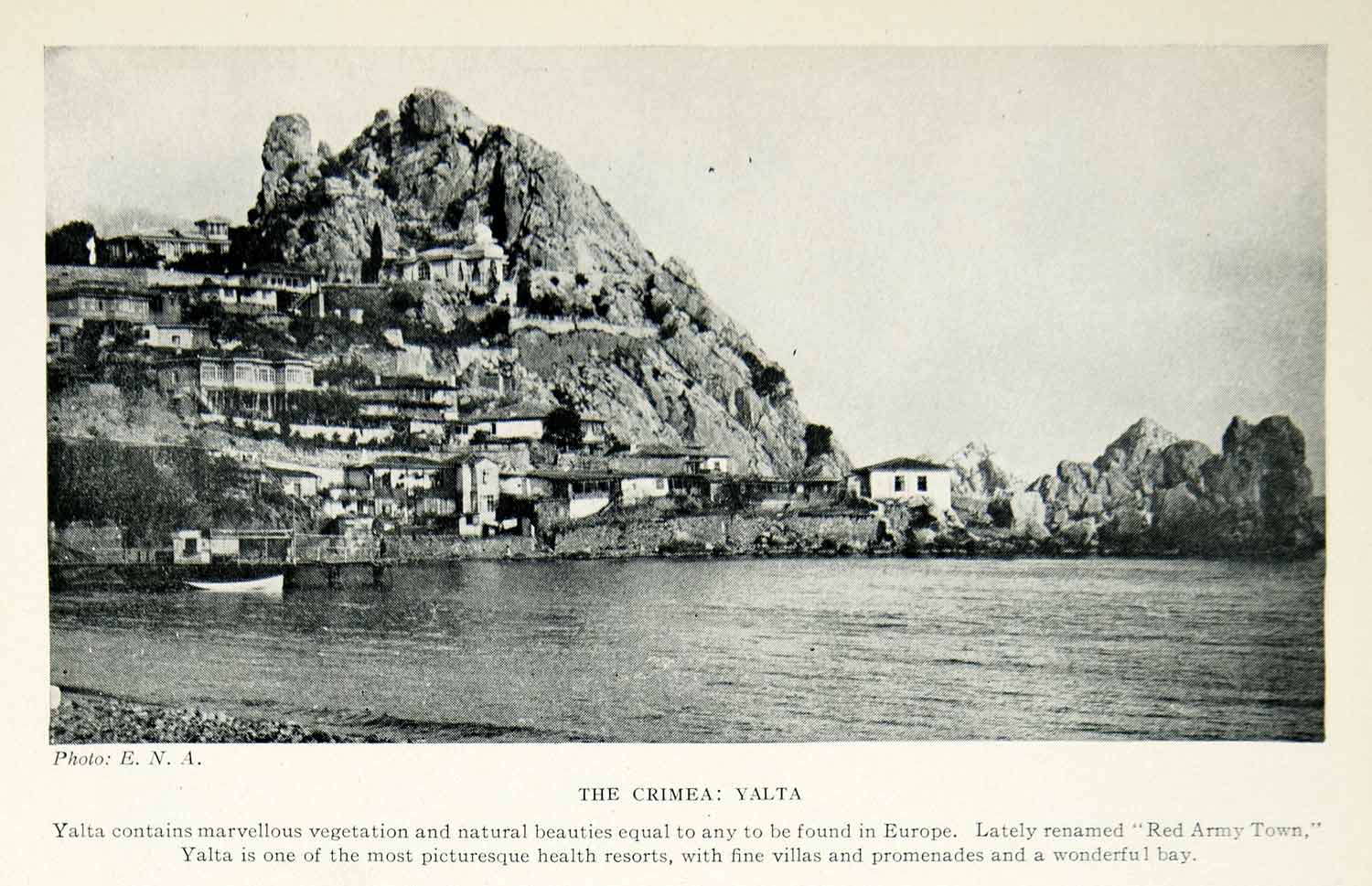 This is an original 1925 black and white halftone print of a historic cityscape of Yalta, Crimea, Ukraine.
