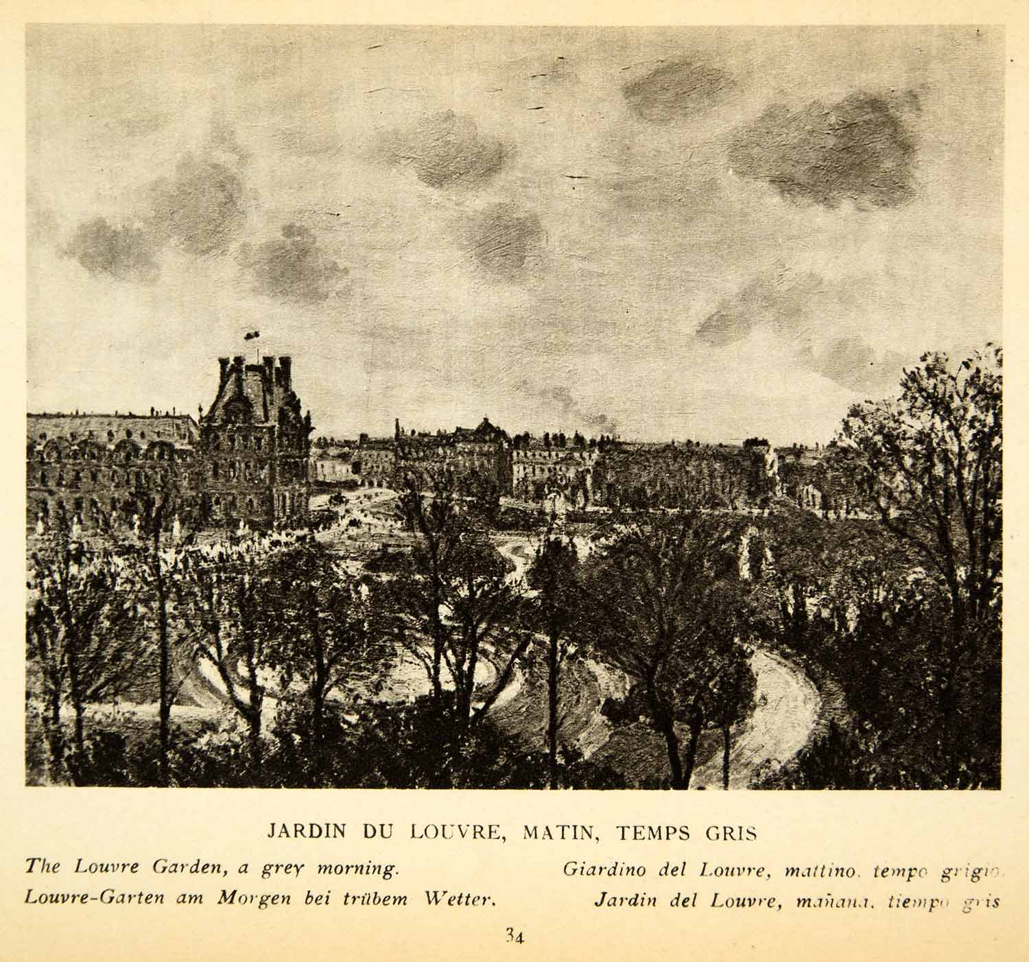 1925 Rotogravure Tuileries Palace Louvre Gardens C. Pissarro Impressionism XAX7