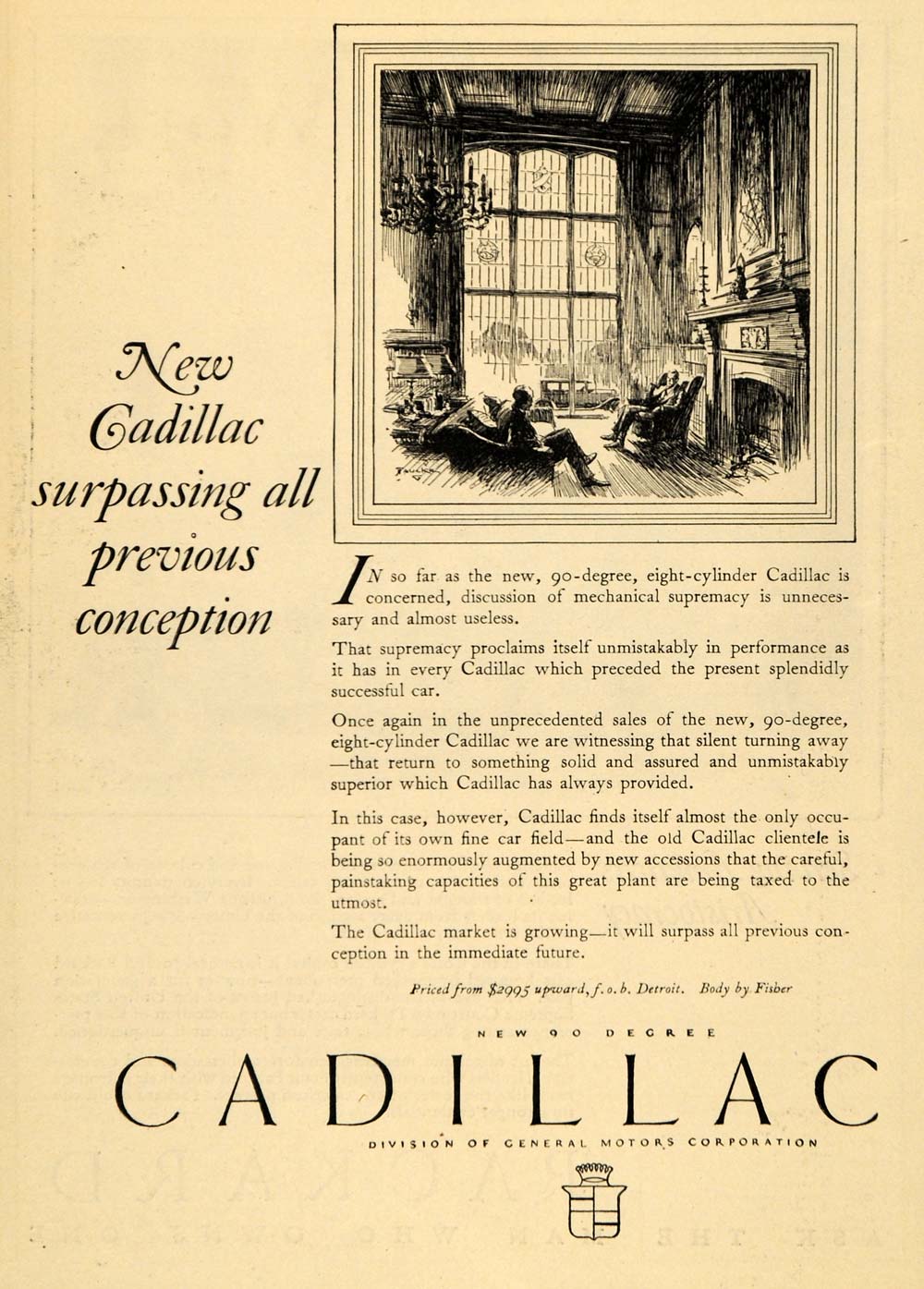 This is an original 1926 black and white print ad for the new 90-degree, eight-cylinder Cadillac (a division of General Motors Company).