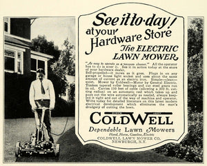 This is an original 1926 black and white print ad for Coldwell Lawn Mowers by the Coldwell Lawn Mower Company of Newburgh, New York.