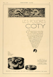 This is an original 1926 black and white print ad promoting the Coty Face Powder and Coty Poudre Compacte from Coty Incorporation located at 714 Fifth Avenue, New York.