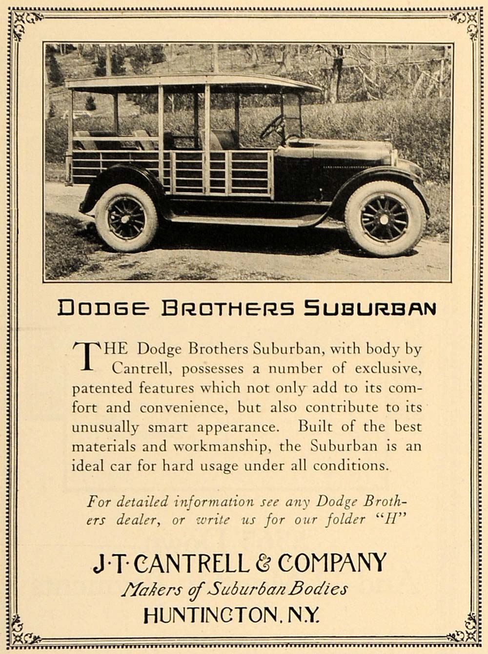 This is an original 1926 black and white print ad for the Dodge Brothers Suburban by J T Cantrell Company located in Huntington, New York.